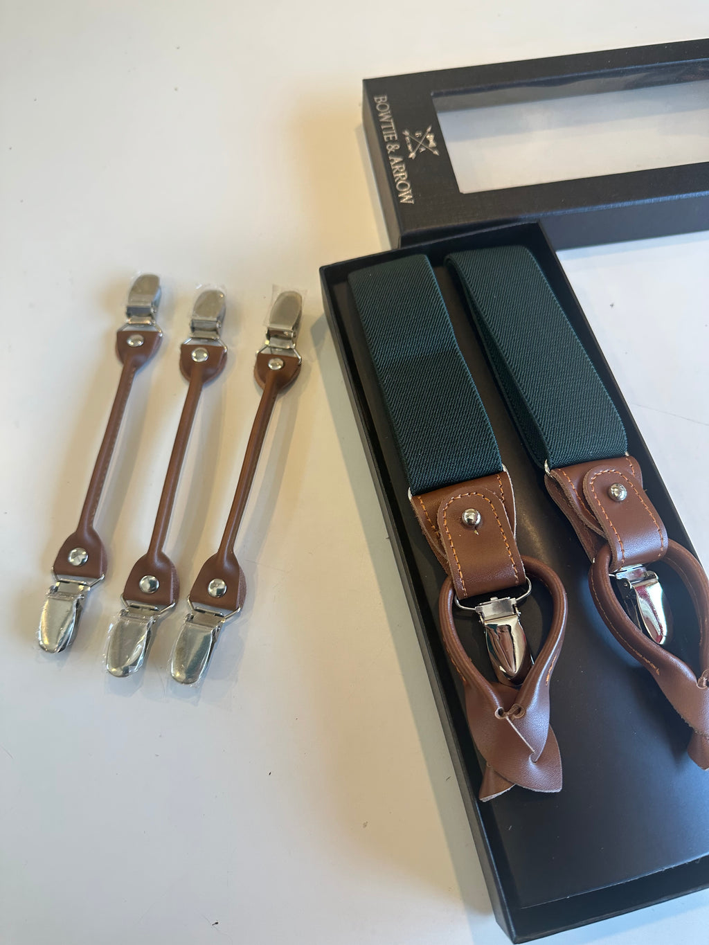 Double clip leather ends for convertible suspenders - set of 3